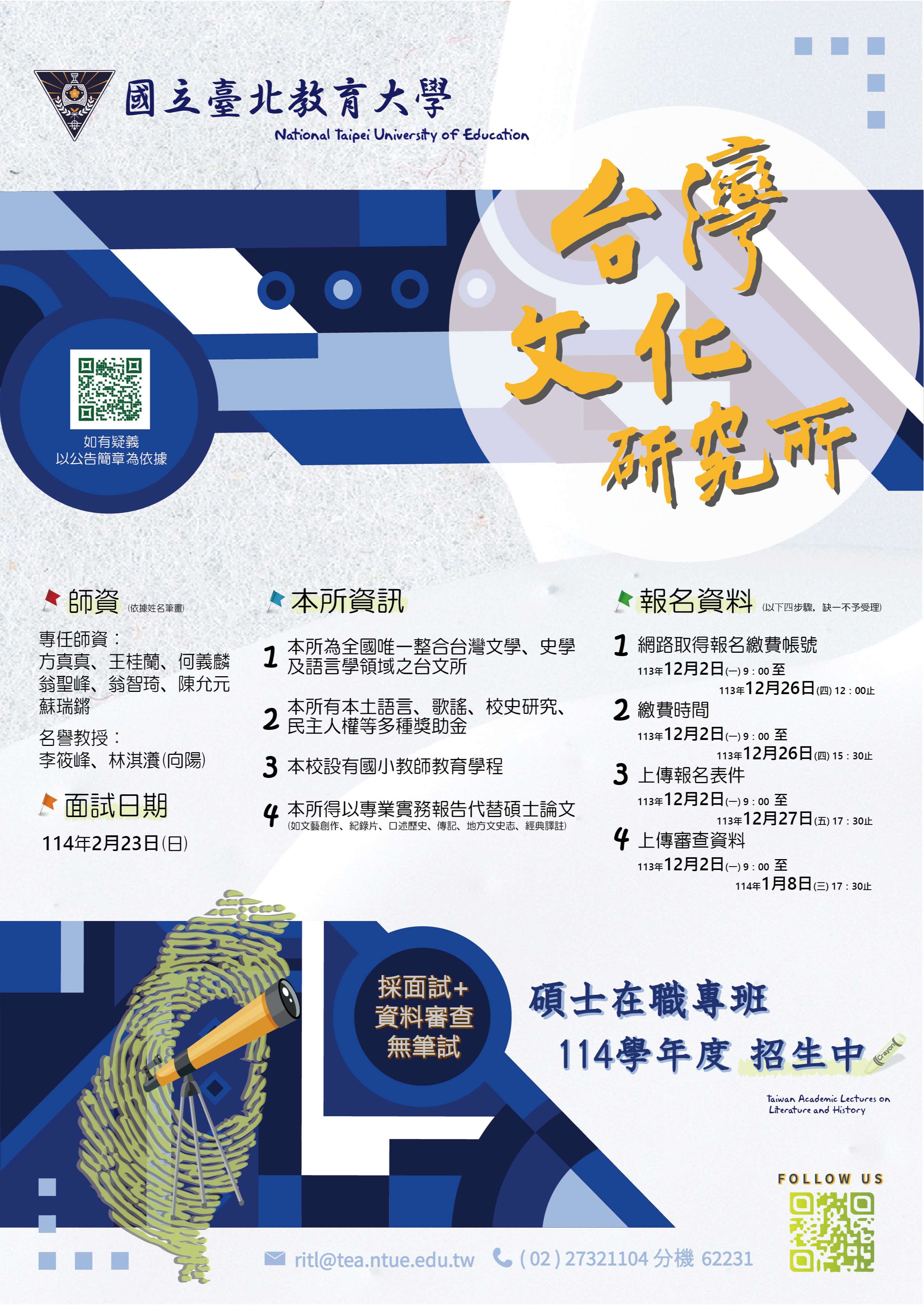 (二)網路填寫報名表:113年12月2日(一)9:00至113年12月27 日(五)17:30。
