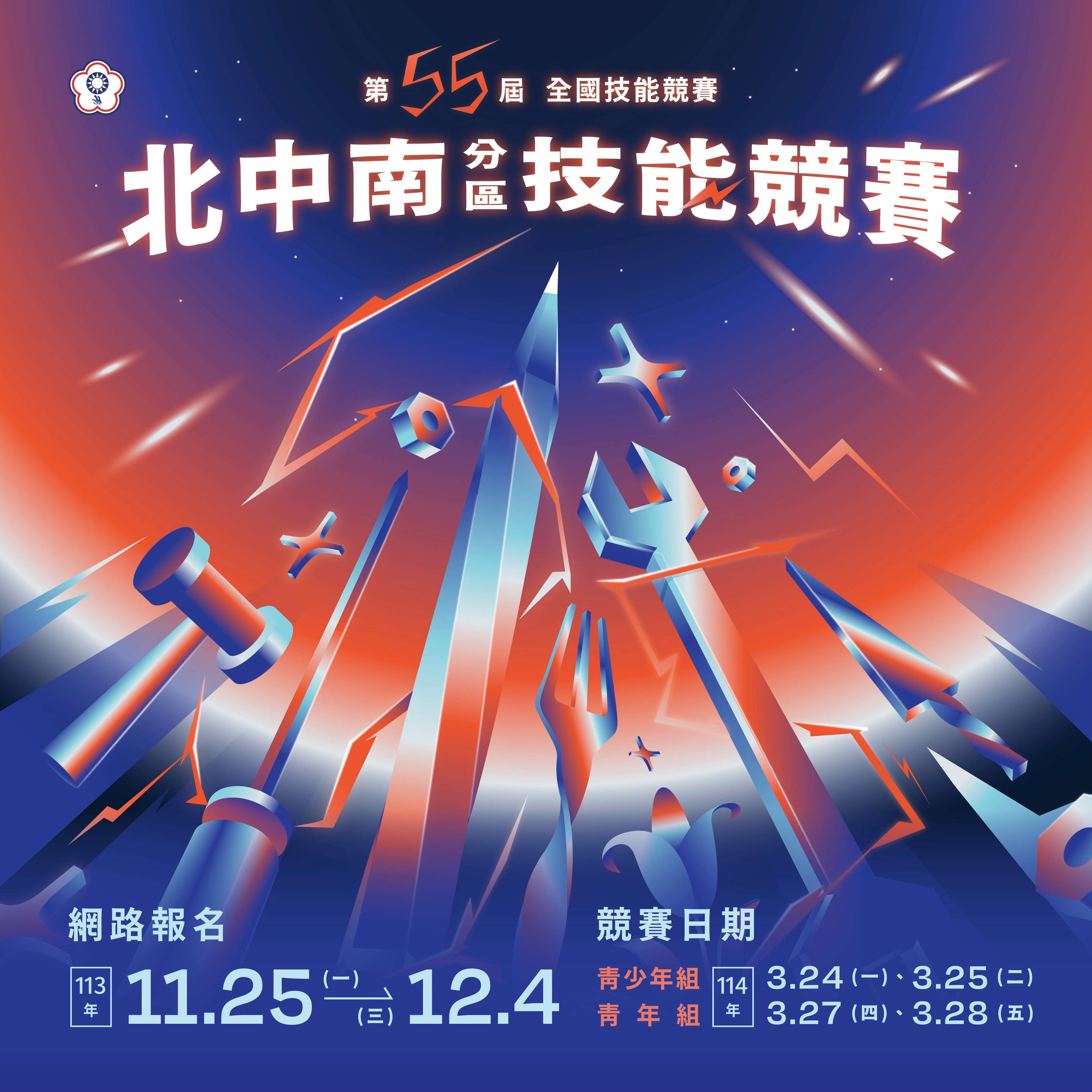 二、為推廣技職教育勞動部每年舉辦全國技能競賽,第55屆分區技能競賽訂於114年3月24日至3月29日於北、中、南三區 共同舉辦,並訂於113年11月25日至12月4日開放網路報名,簡章詳洽技能檢定中心官網賽最新消息(網址: https://www.wdasec.gov.tw)。