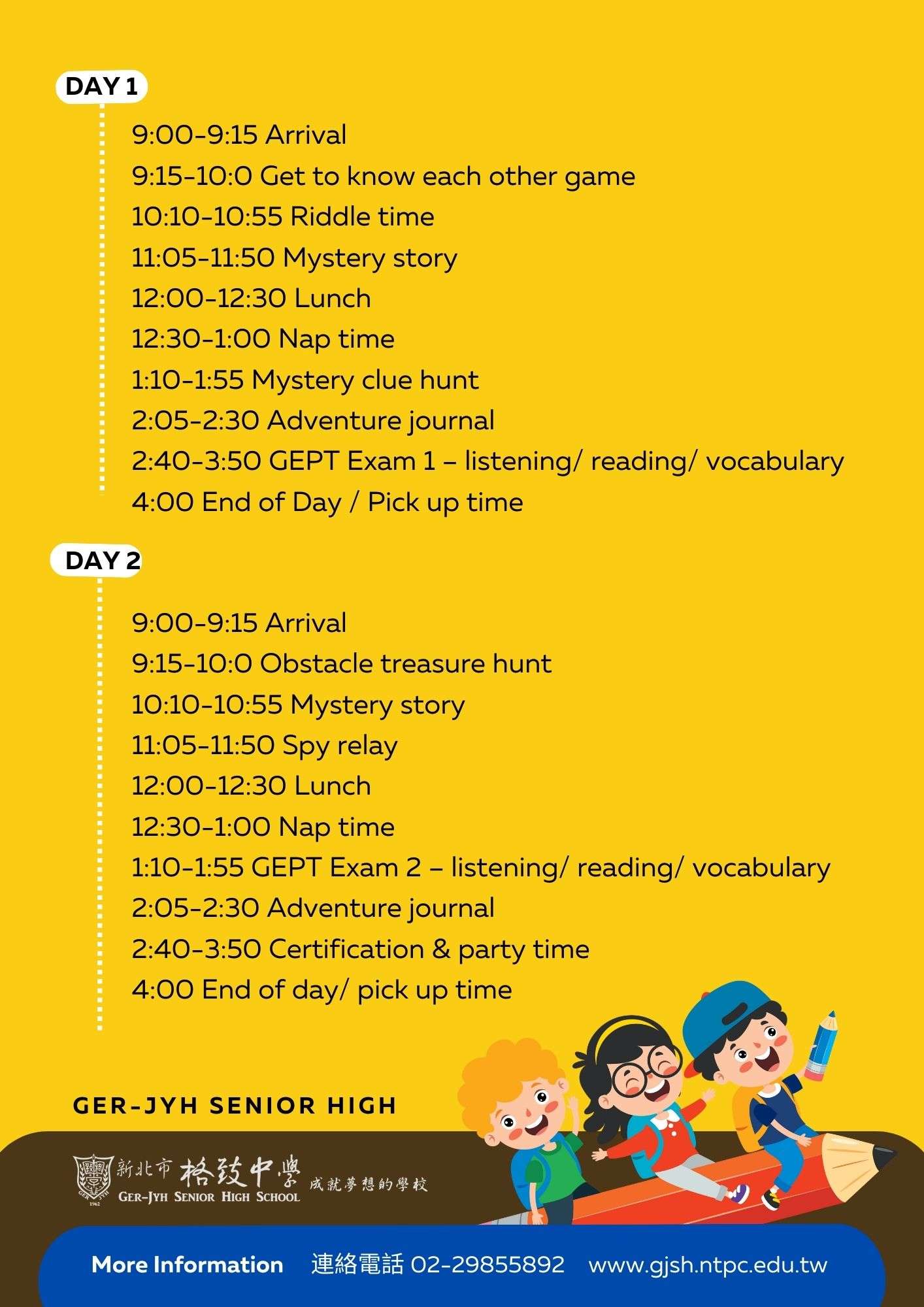 二、本活動特別設計聽、說、讀、寫及遊戲解謎等內容,藉由 趣味互動式教學,強化學生英語實際應用能力。