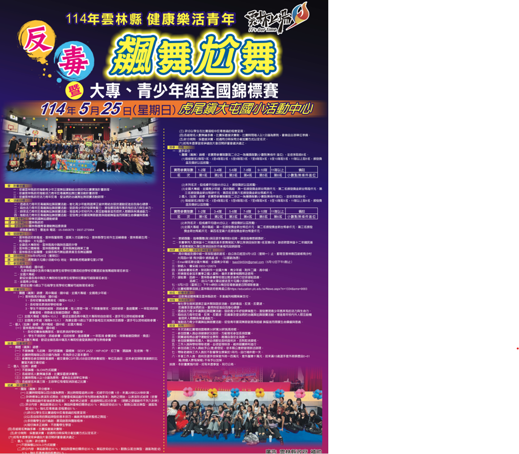 四、檢附競賽活動實施計畫及活動海報電子檔各1份,如有問題 請洽聯絡人:曹采毓0933–120679。